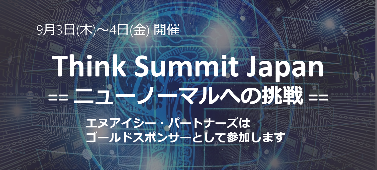 この度エヌアイシー・パートナーズは、2020年9月3日(木)~4日(金)に開催される日本アイ・ビー・エム主催のデジタルイベント「Think Summit Japan」にゴールド・スポンサーとして出展いたします。