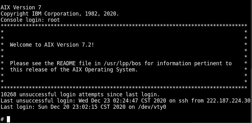 ・AIXのコンソールが表示されます。