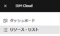 ・IBM Cloud にログインし、画面左上の四本線「ナビゲーションメニュー」をクリックし、下部に表示される「リソース・リスト」をクリックします。