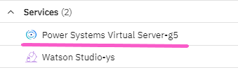 ※上記の出力例は、Power Virtual Server と同じタイミングで Watson Studio の検証も行っていたので、Watson Studioも「Services」に表示されています。