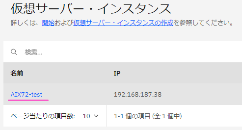 ・インスタンス名がリンクになっているので「AIX72-test」をクリックします。