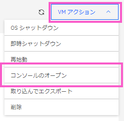 ・「サーバー詳細」の画面の右上にある「VMアクション」のプルダウンから「コンソールのオープン」を選択します。