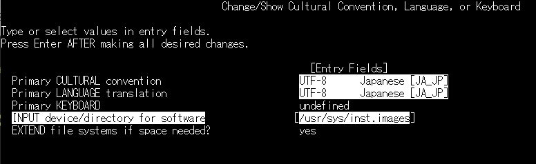 ・リストから「/usr/sys/inst.images」を選択し、Enter を押します。