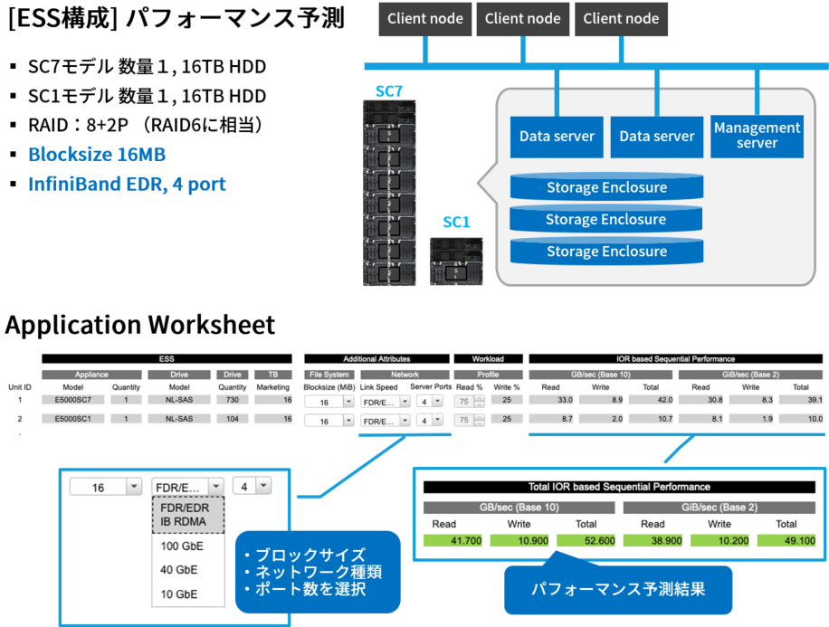 実効容量の計算やパフォーマンスの予測なども可能ですから、ここで欲しいストレージ性能をいろいろシミュレーションできるというわけです(図2)。