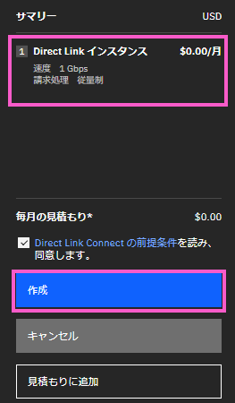 では早速、Direct Link Connect を作成します。