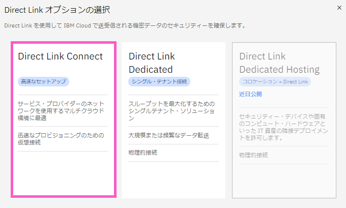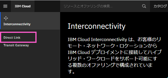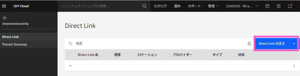 Direct Link Connect は IBM Cloud のポータルから作成(契約)します。