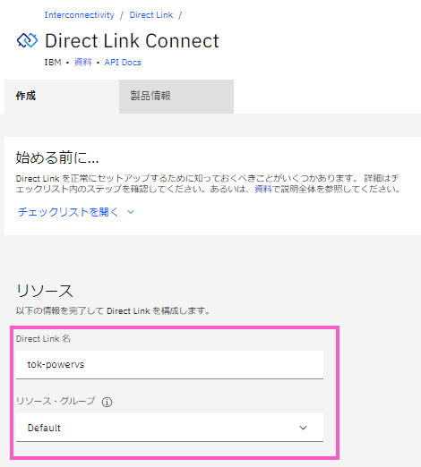 > Direct Link 名:tok-powervs(任意の文字列)