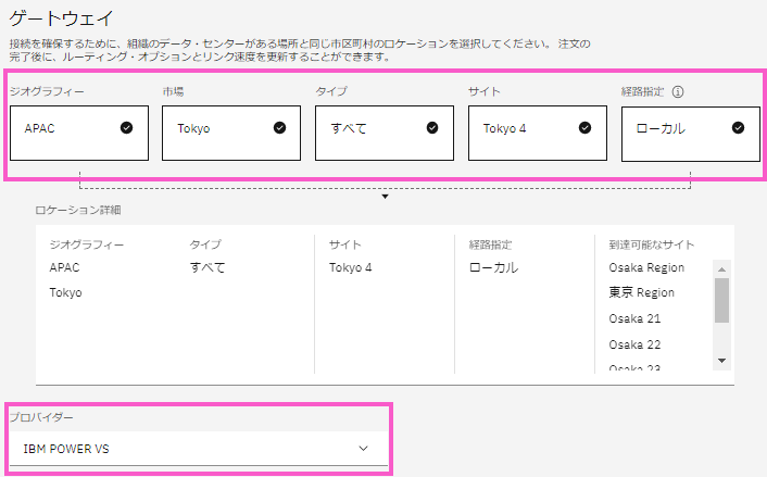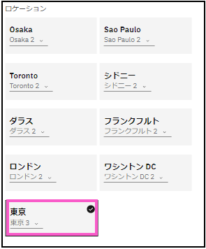 > ロケーション:東京1(東京1~3が選択できます)