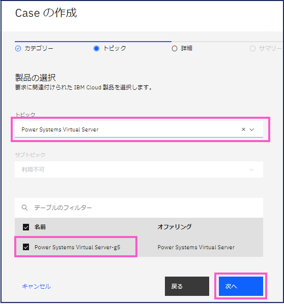 > トピック:「Power Virtual Server」をプルダウンから選択