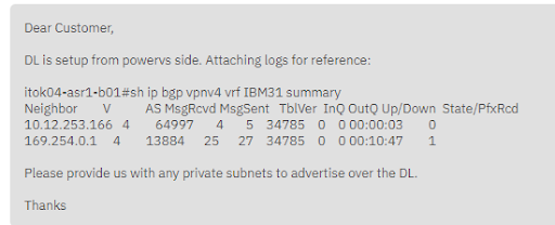 | サブジェクト:PowerVS : Direct Link 2.0 Request |