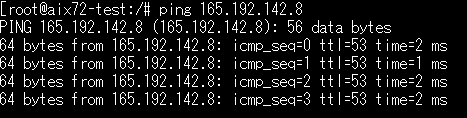 AIX環境とx86環境間でPing疎通ができるかの確認を行います。