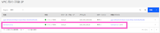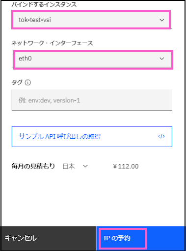 > 浮動IP名:tok-test-vsi-ip(任意の名前でOK)