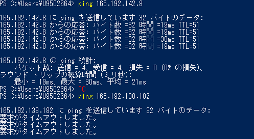 私のPCから作成した浮動IPに疎通できるか確認します。
