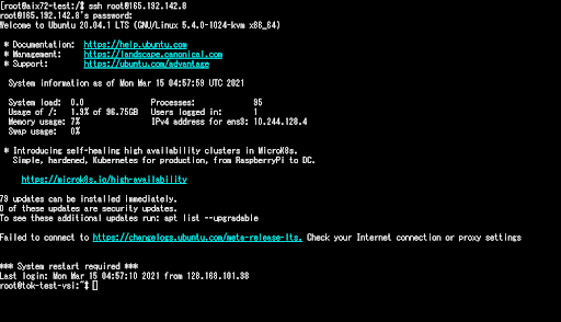 AIXサーバからVSIのubuntuサーバにssh でログインできることも確認できました。
