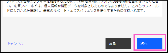 ・記載が完了したら「Caseの作成」ページの一番下にある「次へ」をクリックします。