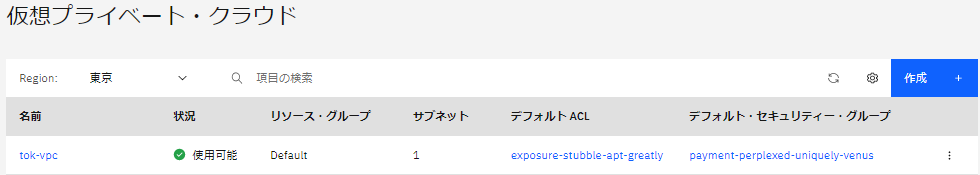 > 名前:tok-test-vsi(任意の名前でOK)