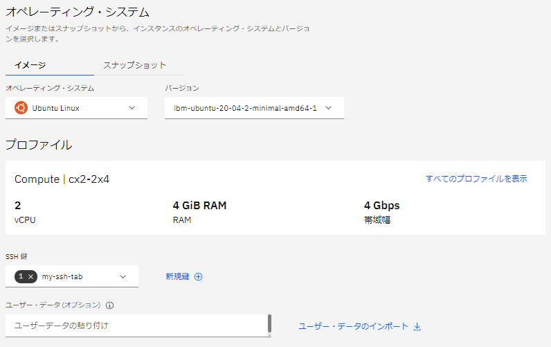 (SSH鍵はAIXインスタンス作成時に作ったものを利用します)