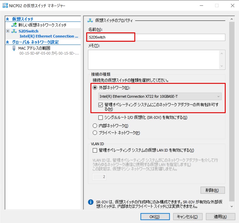 - 仮想スイッチの名前:S2DSwitch