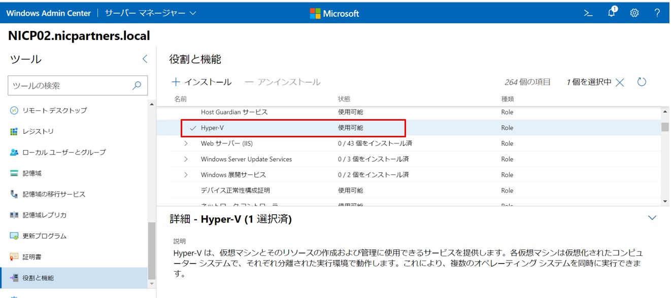 Windows Admin Centerではインターフェースが分かりやすかったので、まだまだ触り始めの私でも十分理解出来ました。
