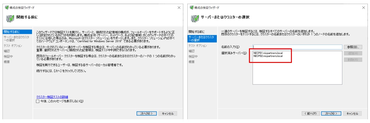 「構成の検証ウィザード」が起動します。MXサーバー2台が選択されていることを確認して「次へ」をクリックします。