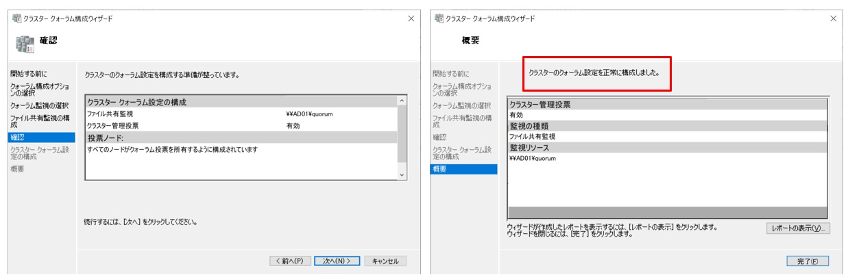 この”クラスタークォーラム設定の構成”の設定で1点躓いたのでご紹介します。