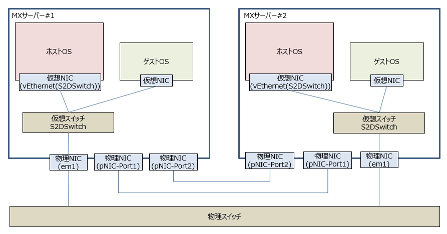 今回のネットワーク設定は「Microsoft Storage Spaces Direct (S2D) Deployment Guide」(以下、デプロイメントガイド)という資料を参考にしました。英語資料ですが接続構成毎に詳細に解説してありますので、ぜひMXサーバー構築の際には一読されることをおすすめします。今回はデプロイメントガイド43ページからの「RoCE: 2-3 nodes, direct-connected」という箇所を参考にしました。
