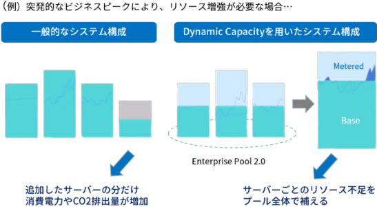 どういう仕組みかというと、同じサーバーモデルでエンタープライズプールという形で “チームを組む” ことによって、コアやメモリーといったリソースを全サーバーで共有が可能になります。