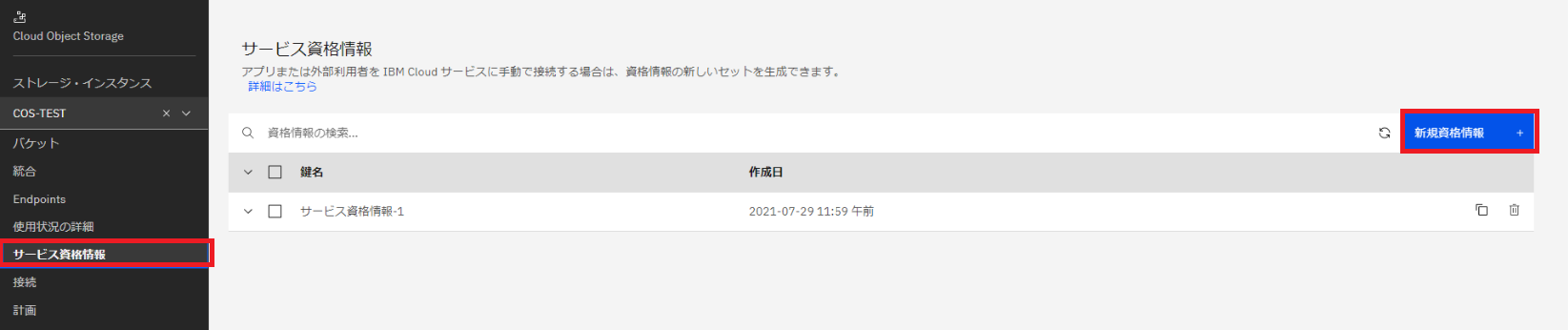 1)IBM COSの設定