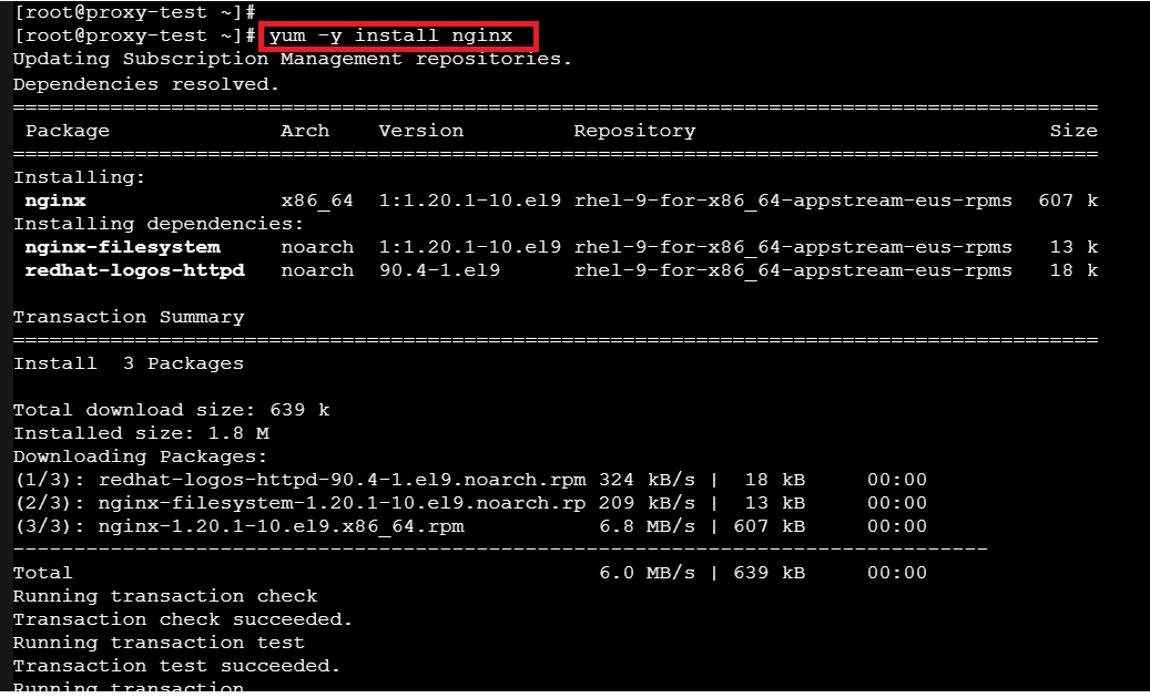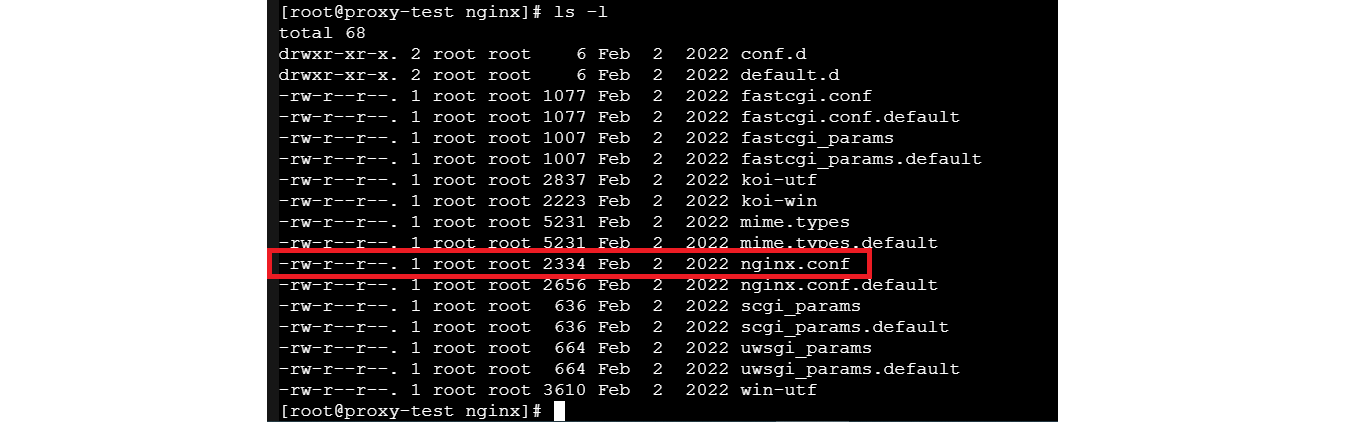 nginx設定のため “/etc/nginx/nginx.conf” を探しましたが見当たりません。RHEL に nginx はデフォルトで導入済みと思い込んでいましたがインストールが必要でした。
