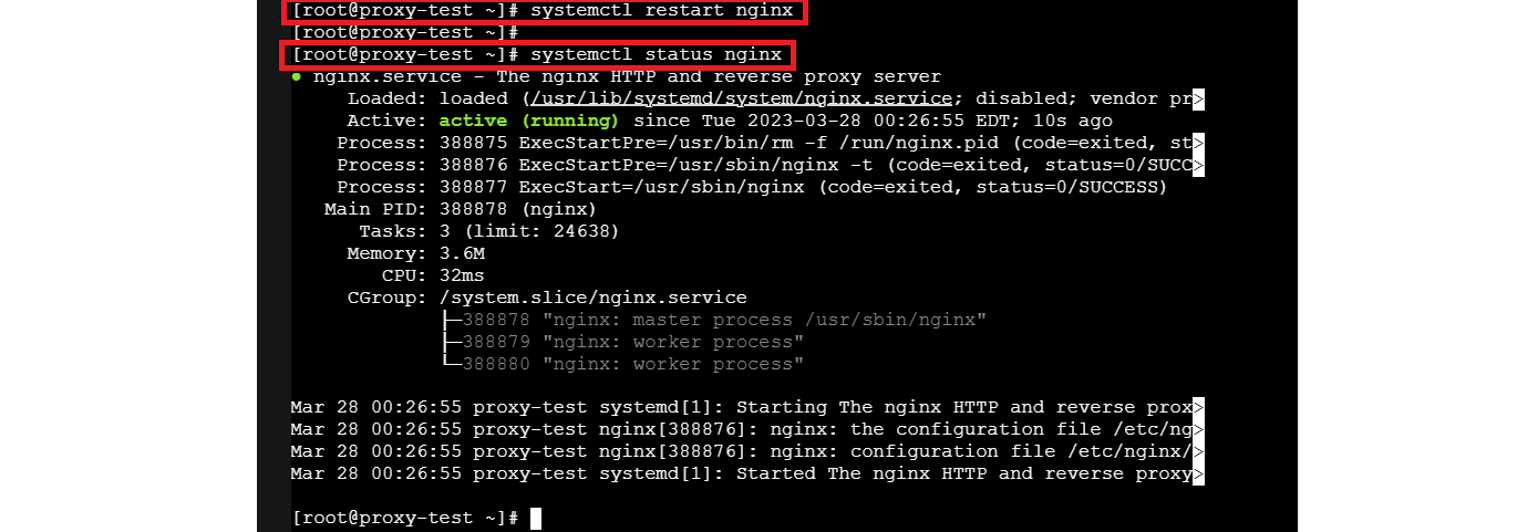 # systemctl restart nginx