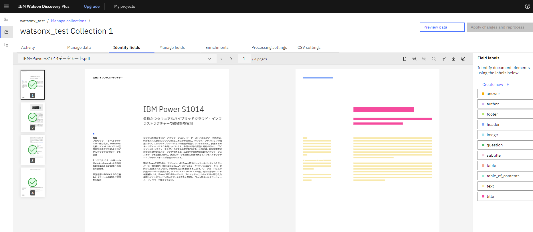 ※取り込むデータは「IBM Power S1014 データシート」のS1014のPDF - watsonx.aiのプロビジョニング