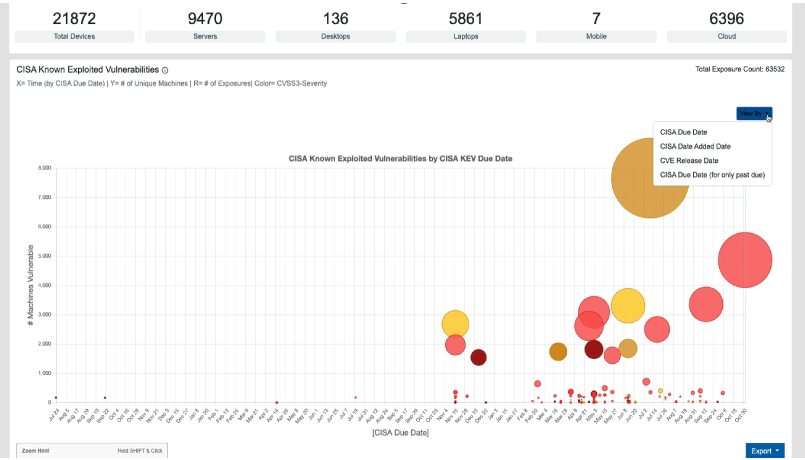 CyberFOCUS Analytics 機能で CISA による既知の悪用された脆弱性を簡単に把握できる。