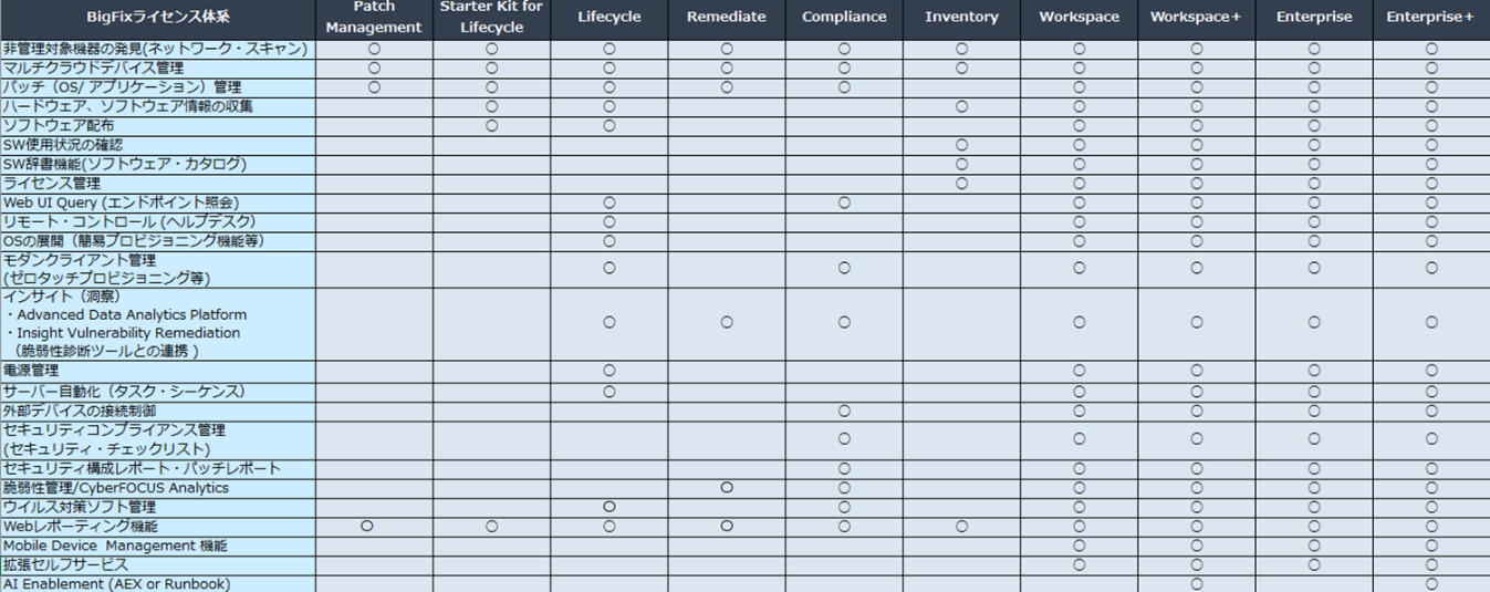 • HCL BigFix は、これらすべての機能を単一プラットフォームで実現するため、複数ツールの導入が不要