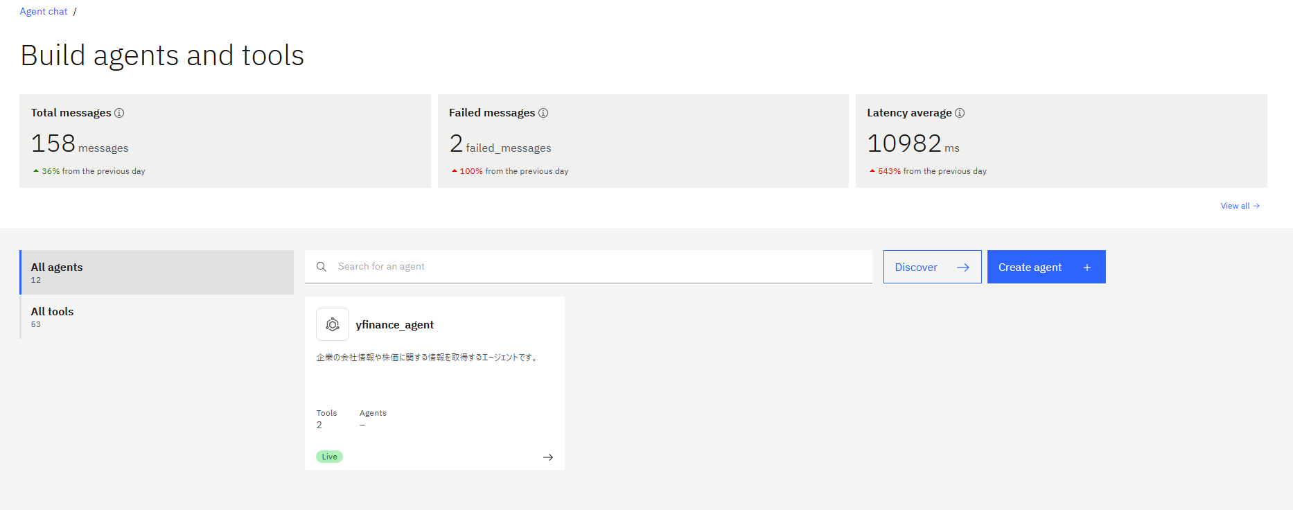 インポートしたAgentとToolをIBM Cloud上のwatsonx Orchestrateで確認します。
