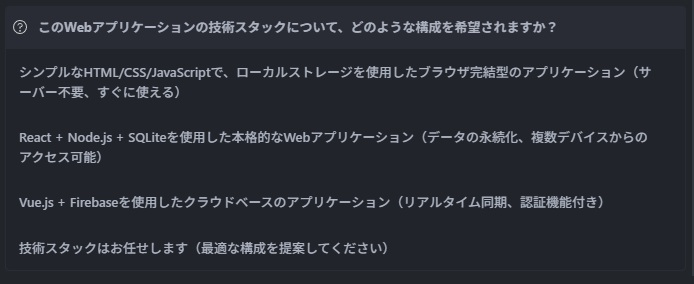 このように、Bobが具体的な選択肢やデータの入力を促してくれるため、抜け漏れのない状態で計画を立て、実装へと進めることができます。
