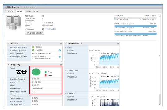 以下のようにvCenterからHyperFlexのクラスタを管理することができます。