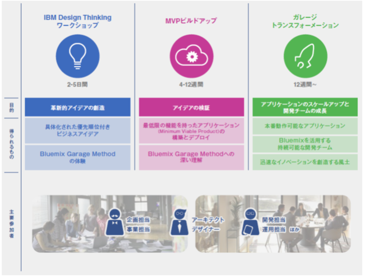 IBM には、IBM Bluemix Garage というデジタル・トランスフォーメーションをサポートするサービスがあります。