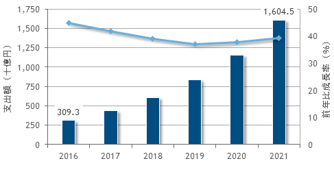 オンプレミス・プライベートクラウドの比率は下がっていくものの、プライベートクラウド全体は2021年の支出額は2016年比5.2倍、成長率も35%以上と高い成長率が続くと予測されています。