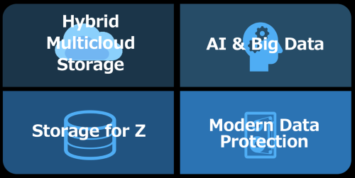 IBM は現在、あらゆるお客様の規模・業種あるいはユースケースなどに対応するためにストレージ製品群を以下の4つのカテゴリーに分けて考えております。