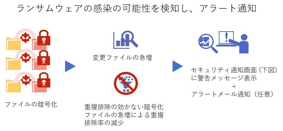 この製品(ソフトウェア)がすぐれているのは、ランサムウェアに感染したことを検知し管理者にメール通知してくれる点です。